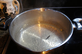 The next day drain the strands of Agar-Agar and add it to the 6 cups of water in a pot. Add the cardamon and cinnamon. Bring to a boil and simmer gently for about 30 minutes or until the strands have dissolved completely. Stir occasionally.