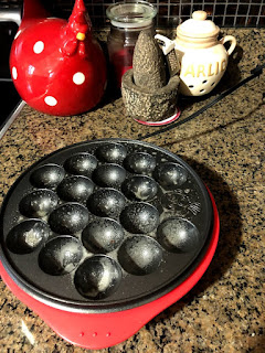 My first course of action was to find the appropriate pan which I found on Amazon. Although there are various Indian non-stick Paniyaram Pans I ended up with a Japanese electric non-stick pan called a Takoyaki Pan which is convenient and easy to use.